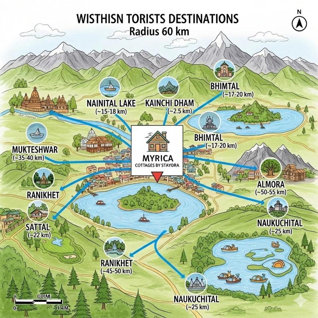 The area is popular for hiking, and car hire is available at Myrica Cottages, Kainchidham By Stayora.